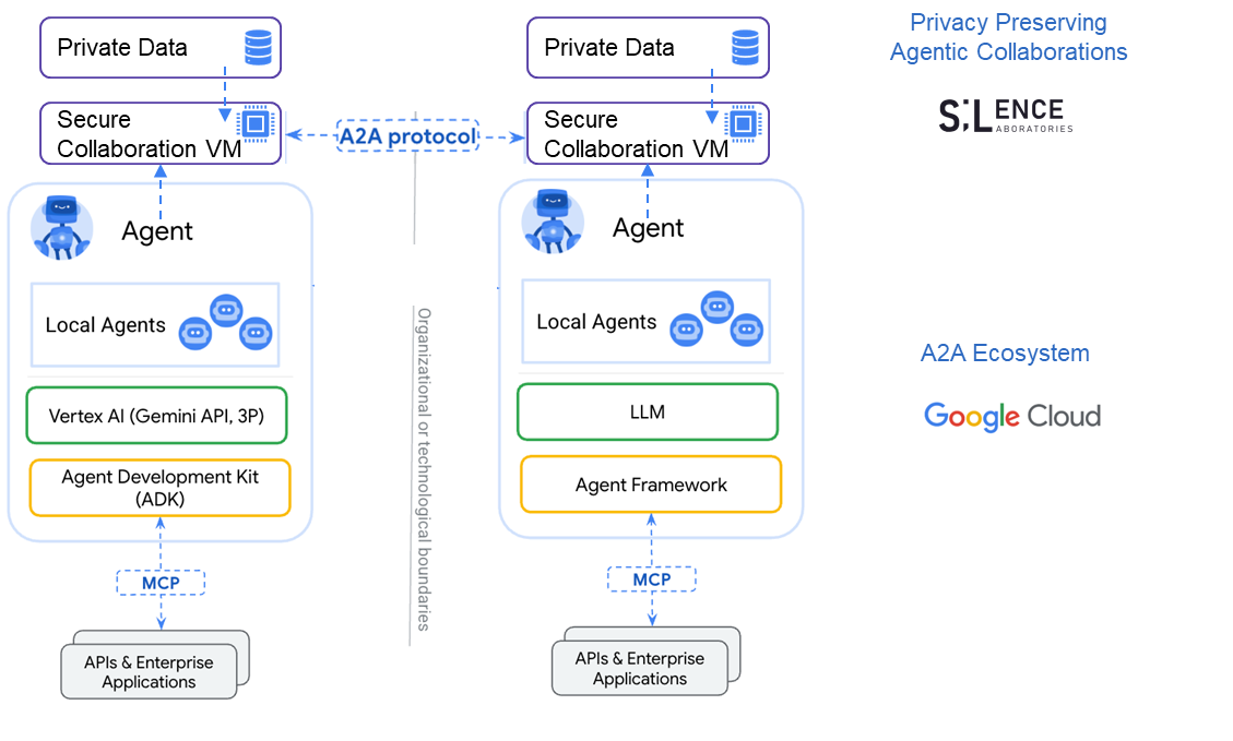 This whitepaper presents Silence Laboratories' vision for privacy-preserving agent collaboration and outlines strategic partnership opportunities within Google's A2A ecosystem. We examine the technical architecture, key use cases, and business value of cryptographic computing in agent workflows—demonstrating how organizations can accelerate A2A adoption while maintaining mathematical guarantees of data confidentiality.
