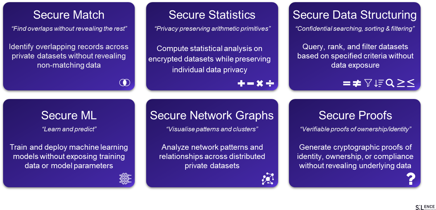 Silence Laboratories specializes in cryptographic computing infrastructure that enables secure multi-party collaboration. Our Cryptographic Computing Virtual Machine (CCVM) allows enterprises to perform joint computations on sensitive data while maintaining mathematical privacy guarantees.
